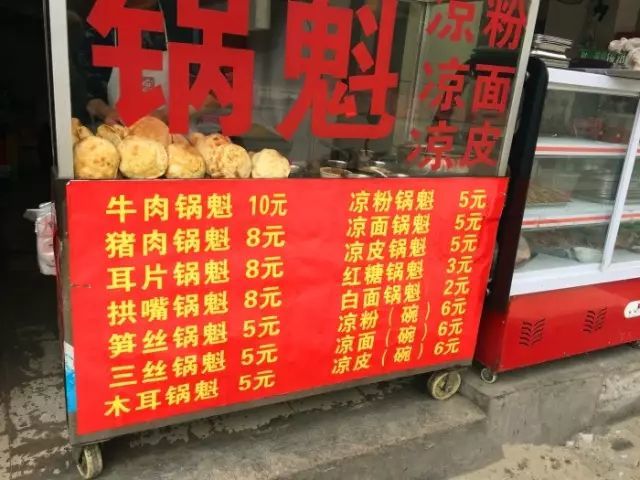 买锅盔的队伍排的很长,锅盔种类很多,还有凉粉锅盔,但是味道一般不是很推荐。