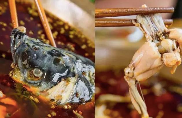 蛙和鱼头的个头都十分的大,清油锅底,让鱼和蛙都十分的鲜嫩。