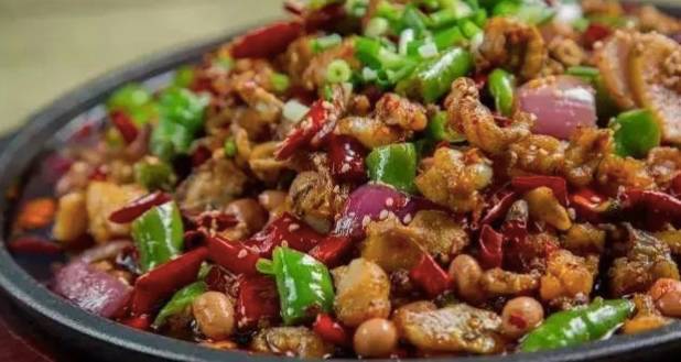干锅掌中宝被炒的很香,有芝麻的香味混杂着辣椒的味道。不会太干辣,掌中宝十分香脆。