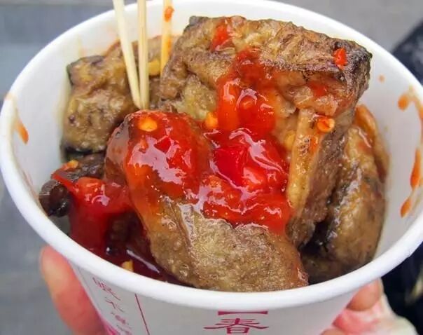 唐字的臭豆腐就是属于灰白的嫩豆腐。嫩臭豆腐下到油锅里炸至金黄色,就可以起锅,吃的时候浇上一些辣椒酱、芝麻酱、蒜汁、香菜、小葱、姜末,吃起来外脆内酥软,味道香浓。