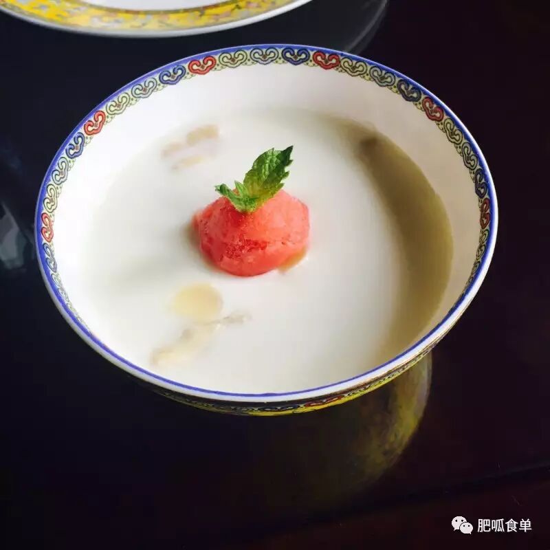111因为刚刚吃饱饭便没要点心,一碗奶酪果子冰,一碗杏仁豆腐,还没动口就有被美到,我想当一碗糖水被当做艺术一样对待时它的味道一定不会难吃,果真如此。