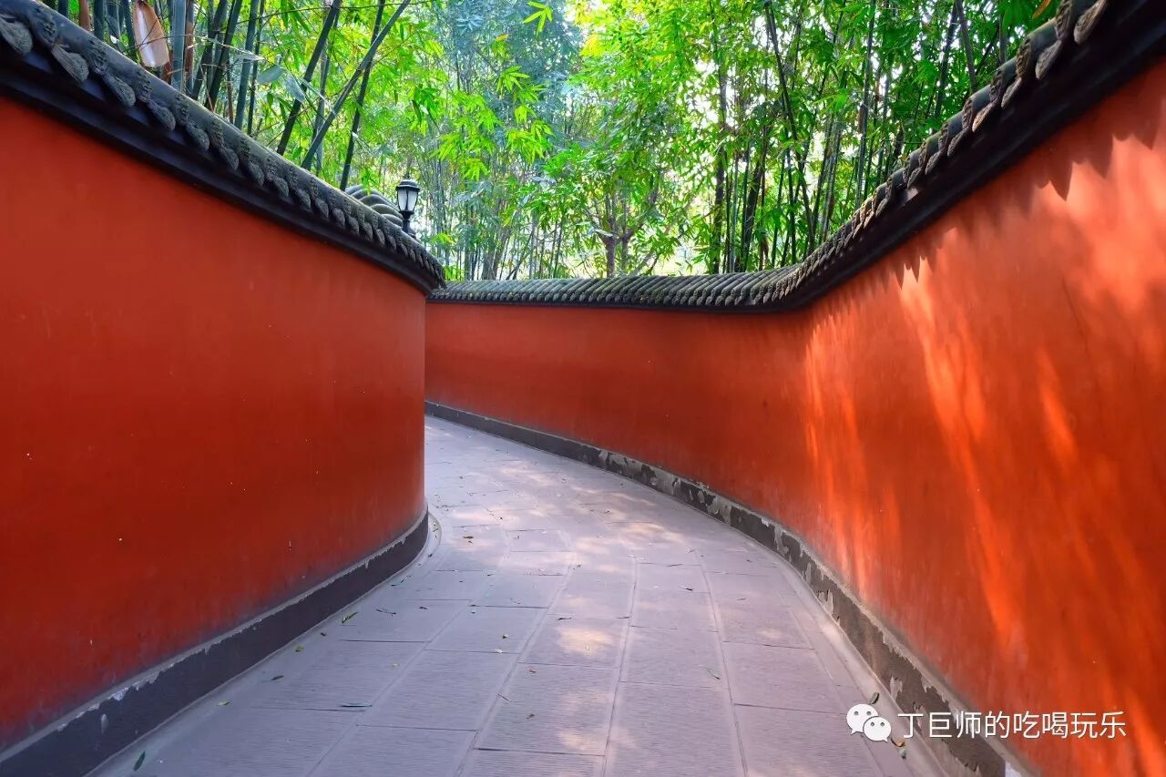 当然了,来武侯祠肯定不是为了了解这个中国唯一的君臣合祀祠庙,而是深处的“红墙竹影”。大家来了之后记得找惠陵,就在那附近,千万不要逛一下就走啊。尽管游客很多,还是努力拍到刹那没有人的曲折迂回的红墙。