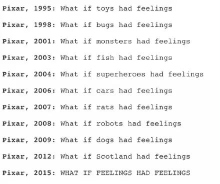 之前曾经在网上看到他们整理了一个皮克斯的创作思路