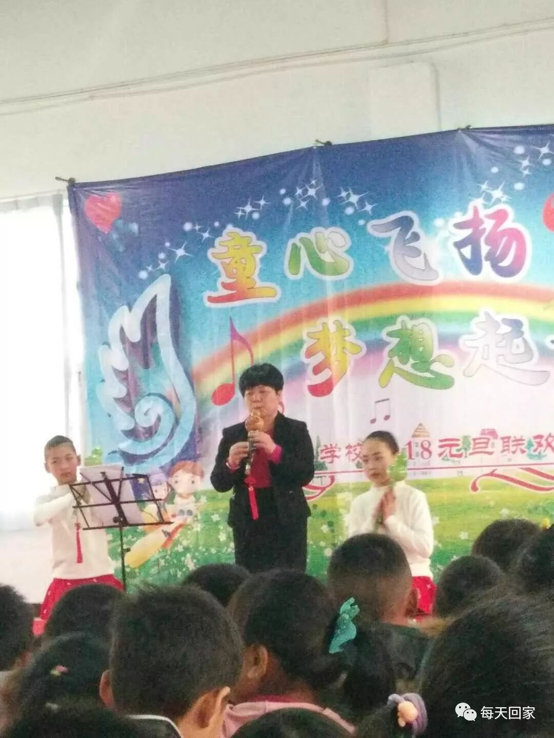 2017年12月29号上午,我们北苏闸学校在体育馆隆重举行“童心飞扬 梦想起航”元旦联欢会,有幸我又一次登上了“舞台”,而不是每天的家常饭“讲台”!2009年合班并校第一年我们举行“六一”汇演,那次我也上了这样的“舞台”,是和好几个老师一块跳14步,这回是独自一人吹奏葫芦丝“军港之夜”,感觉一个人在台上怪孤单,硬是拉上表演葫芦丝“荷塘月色”的两个学生给“助阵”,这才有了底气!翻箱倒柜也没找到那个“14步”,倒是有张11年的“六一”联欢致开幕词的照片,晒晒吧!