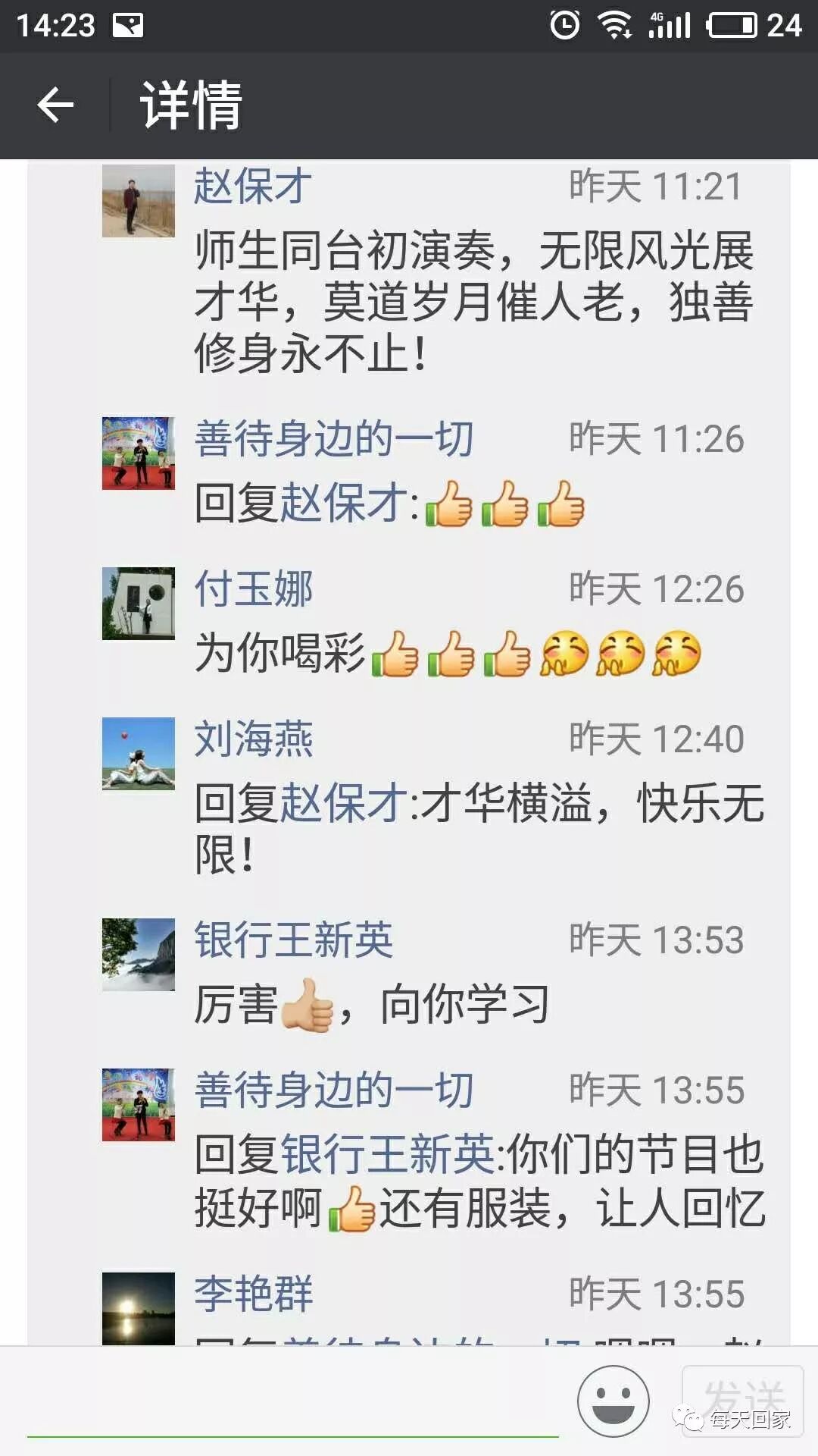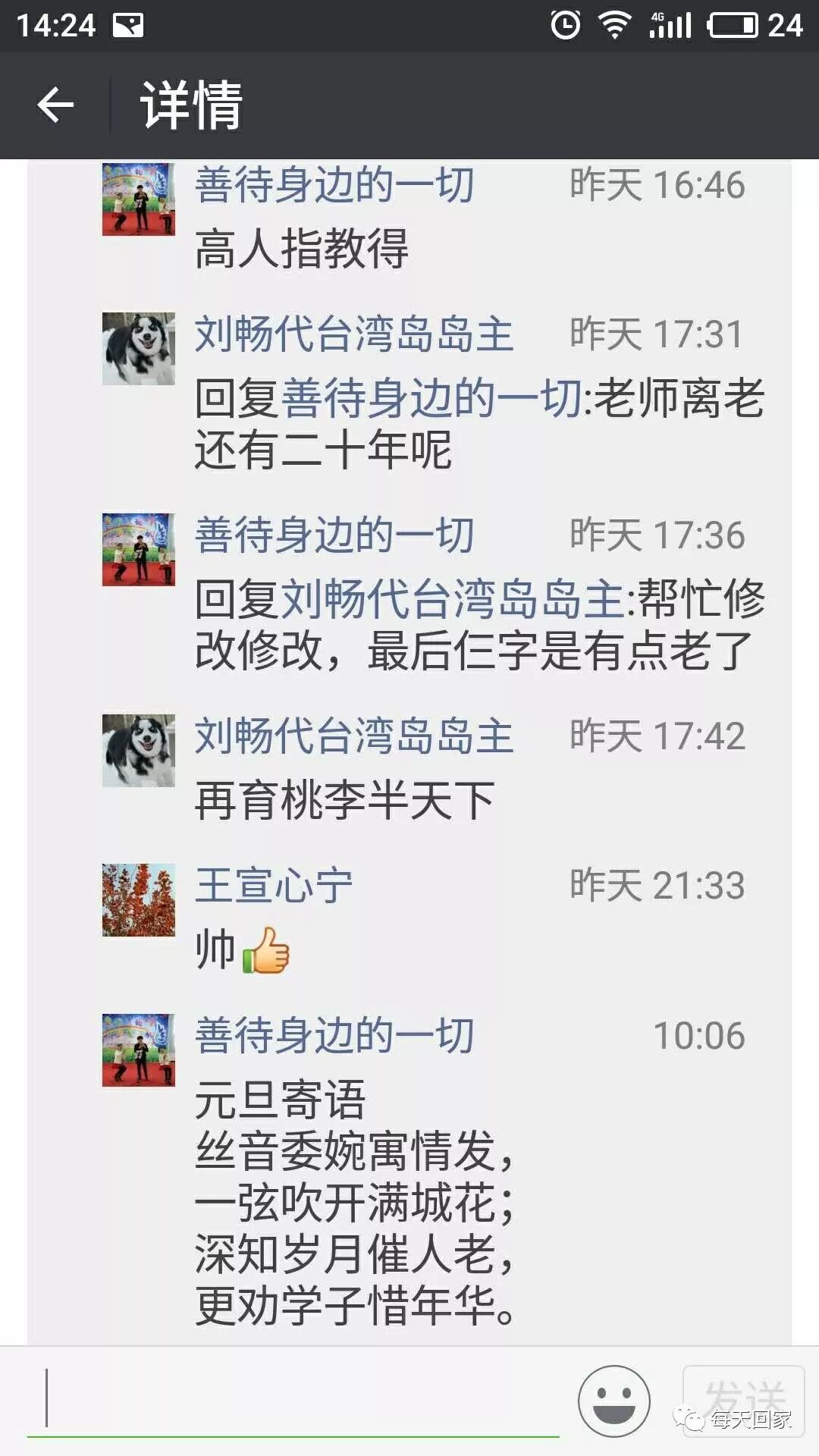 赵保才校长看到我的朋友圈诗兴大发,赋诗一首: