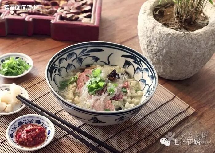 第一次吃羊肉泡馍,是2008年去西安出差。一下飞机,热情的合作商就把一干人拉到了全国闻名的“老孙家饭庄”。这间所谓的饭庄可同市井街头的饭庄大相径庭,先不说悠久的历史,单就那块装饰考究高悬而挂的牌匾“天下第一碗”,就足以说明饭庄在行业中的龙头地位。据记载老孙家饭庄创建于清光绪24年(即1898年),是真正的中华老字号的百年老店。你要再听餐饮部经理介绍饭庄接待过的要员、名人,不仅对老孙家饭庄刮目相看,而且觉得自己此生能有幸来此一享美味也是难得的殊荣呢!