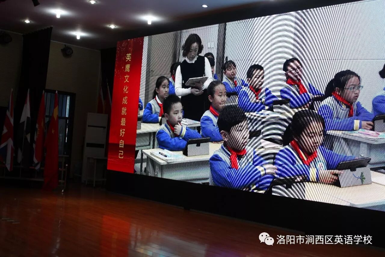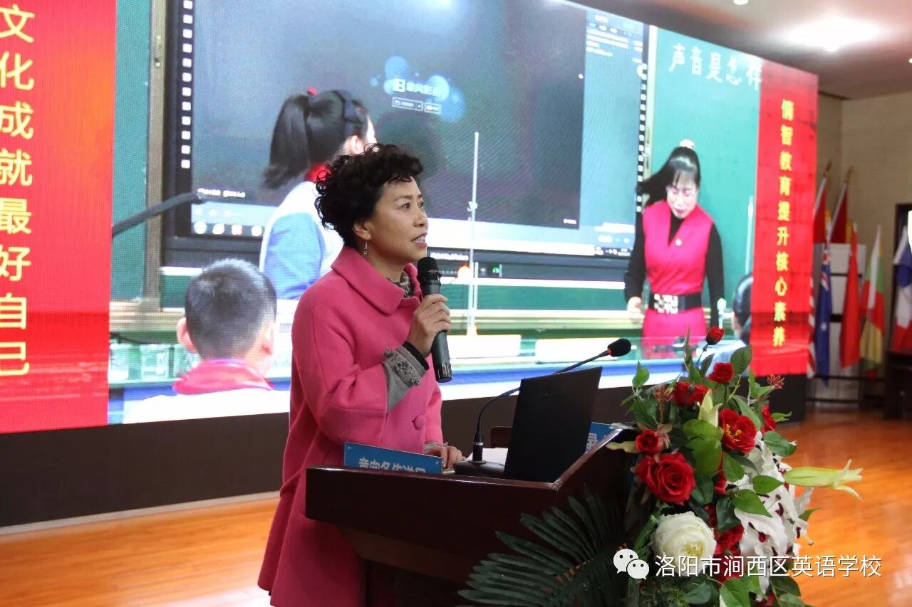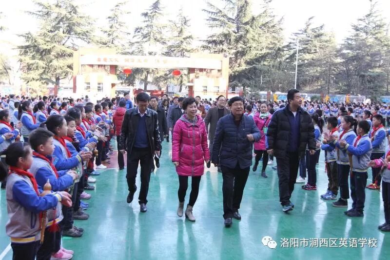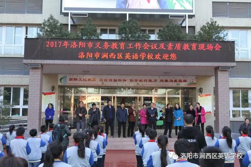 12月19日上午,洛阳市素质教育现场会在涧西区如期召开。在本次活动中,英语学校代表涧西区面向全市进行素质教育成果展示。洛阳市教育局副局长韩经权、牛宏亮,洛阳市教育局基教科科长刘红卫,体卫站站长陈钢,涧西区教育局局长陶思颖,洛阳市教育局中小学教研室副主任杨宝萍、贾大庆,及涧西区教育局相关领导亲临现场,来自全市各区县及市直学校近二百名教育界代表参加了展示活动。