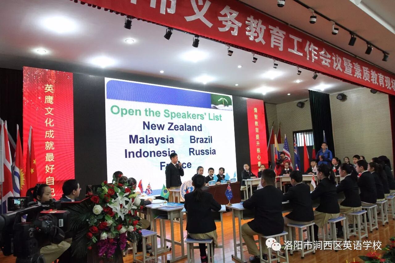 英校少年,多彩模联。英鹰模联社是英语学校英语特色的一大亮点。本次模联会议共讨论“空气污染”和“饮食健康”两个议题。活动流程包括点名、确定议题、开启发言人名单、非正式辩论和记者采访新闻处发言人五个环节,全程使用英文。,它为同学们打开了一扇窗,让大家用具有全球意识的眼光来关心国家,关心世界。孩子们的表演颇有国际范儿、中国味儿,赢得了现场人员的阵阵掌声。