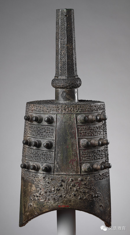 铙又称为钲和执钟,是我国最早使用的青铜打击乐器之一,最初为军中传播号令之用,军中之乐称为“铙歌”。流行于商代晚期,周初沿用。