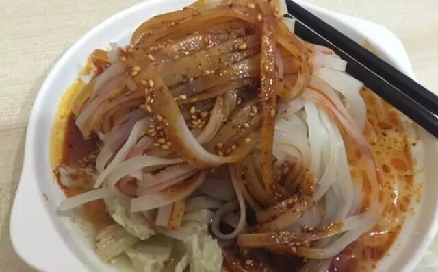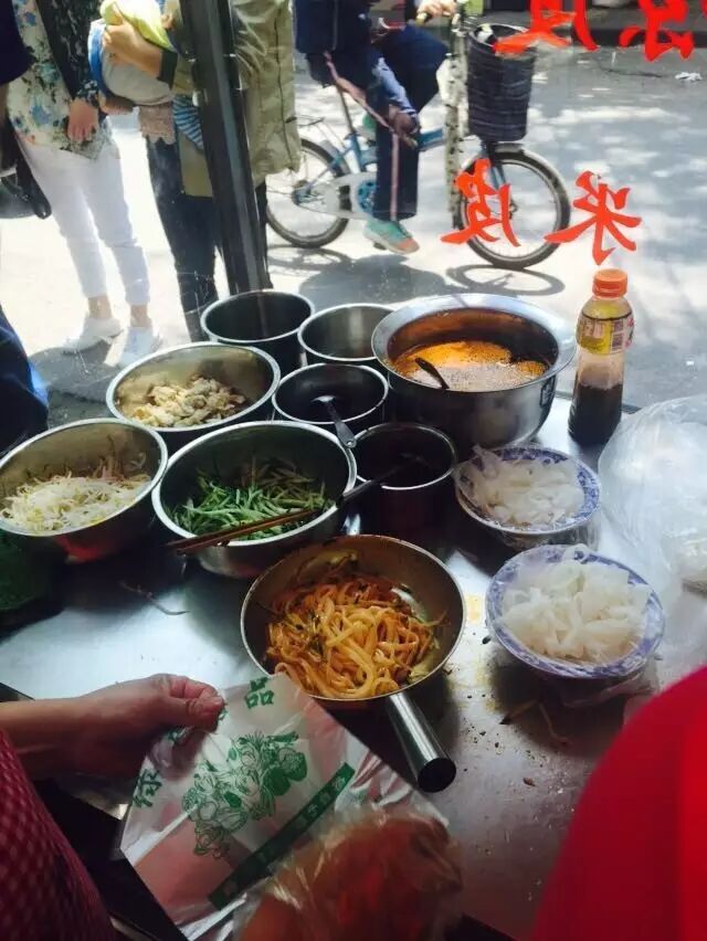 口感有点糯糯的,辣子油很香,拌上豆芽很好吃,第一次吃米皮给我留下深刻印象的是这家。喜欢那种软糯韧性的口感,而且坐在路边摊,初夏绿树婆娑,看着路边射下的树影,感觉很棒。