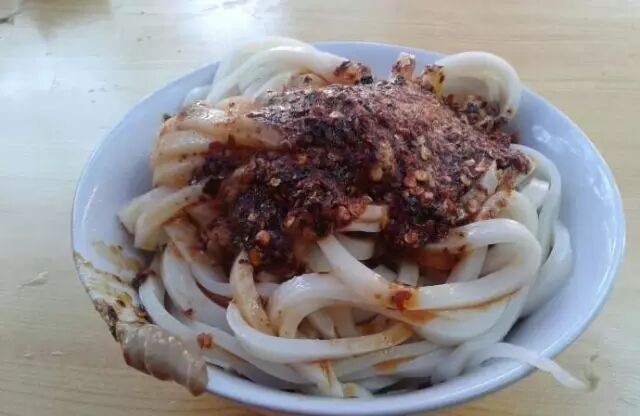 这家的特色有两个:一个是他家用的豆芽是绿豆芽而不是大豆芽;一个是那个香辣的辣椒油。米皮筋道爽滑,辣得过瘾,关键是辣子油给够了回家一路上嘴唇都是麻的。