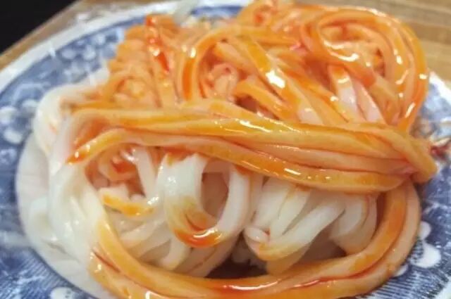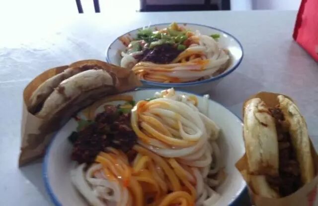 他家凉皮,虽不赢在量上,但因为是正宗的秦镇味道闻名。米皮糯软筋道,红油香滑。