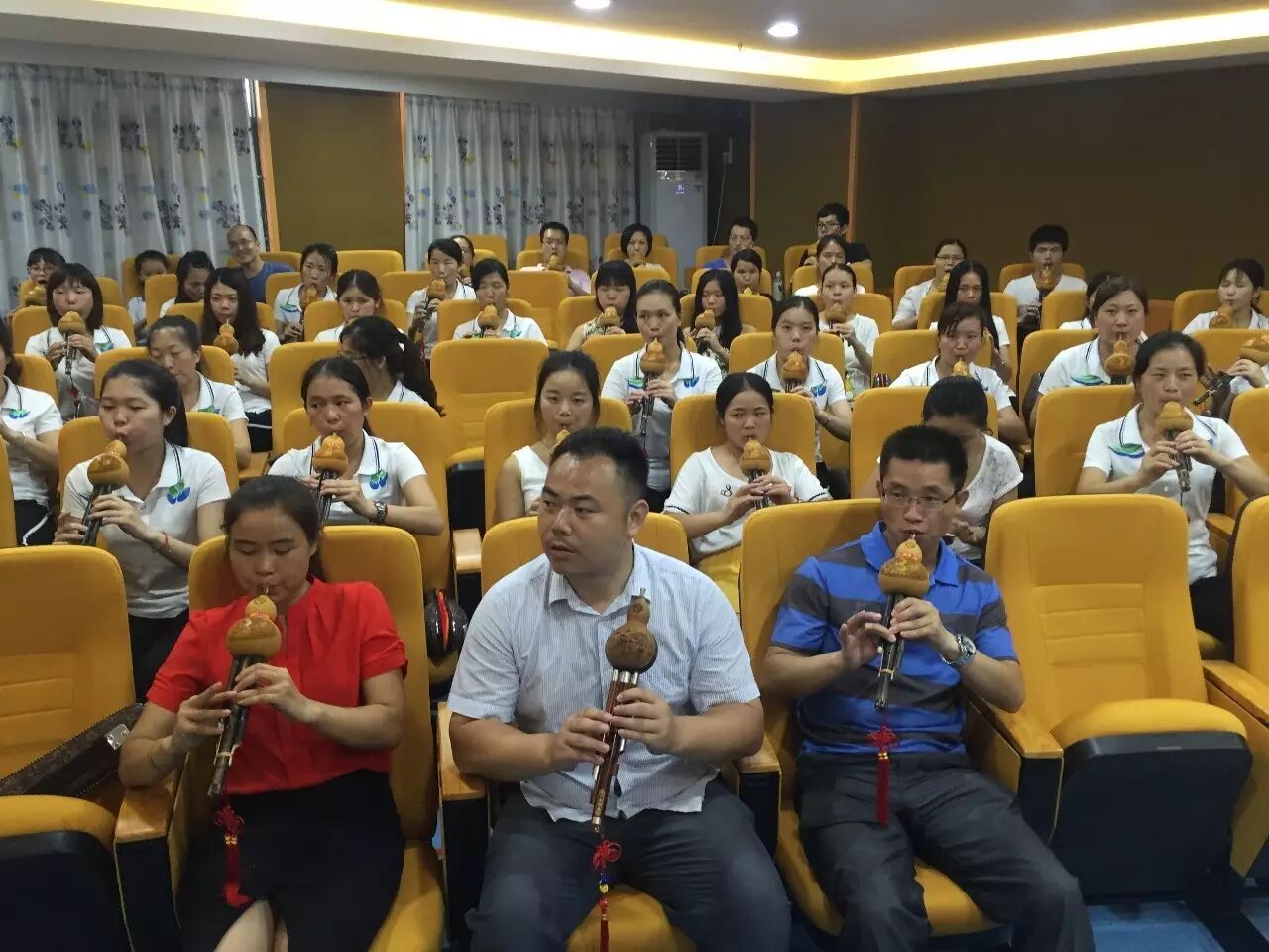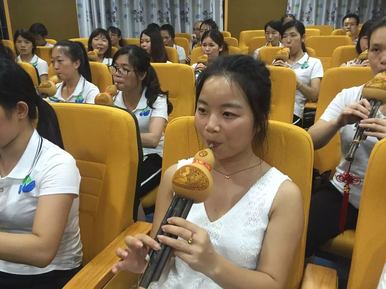 葫芦丝声音柔美、不伤听力。学习葫芦丝,脑要思考,心里要有节奏、耳朵要辨音、手指在快速活动、肺活量由气息在调控,全身都在思考和运动,让老师的身心更加灵敏。