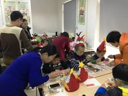 活动现场,家长和小朋友在老师的引导下,佩戴圣诞帽、装扮圣诞树,一起感受节日的喜庆。
