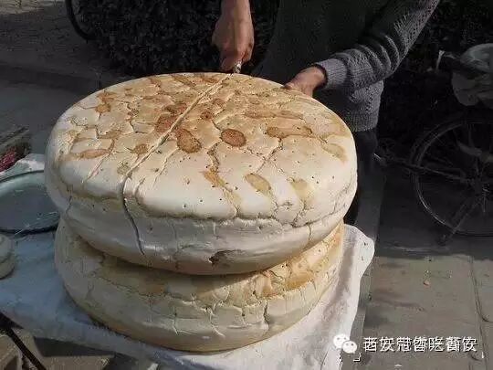 看到这个锅盔外地朋友都惊了!天呐!这么大的锅盔看起来又硬又没什么味这要怎么下嘴!!!这种锅盔至少5指厚,是古代行军打仗时的军粮。可不是直接拿着啃的,而是切成条吃,从侧面看层次分明,吃起来酥香可口。
