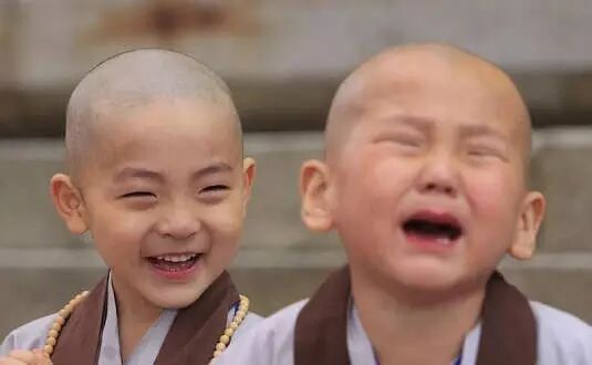 又哭又笑,好好笑哦!小孩子就是喜怒无常,一会儿哭一会儿笑的。