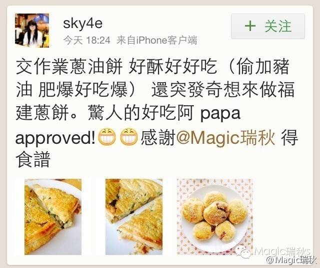 这道点心的作业太多,我选了一些发上来,有不少同学做了升级版,除了青葱外,还加了肉类、香料等,供大家参考: