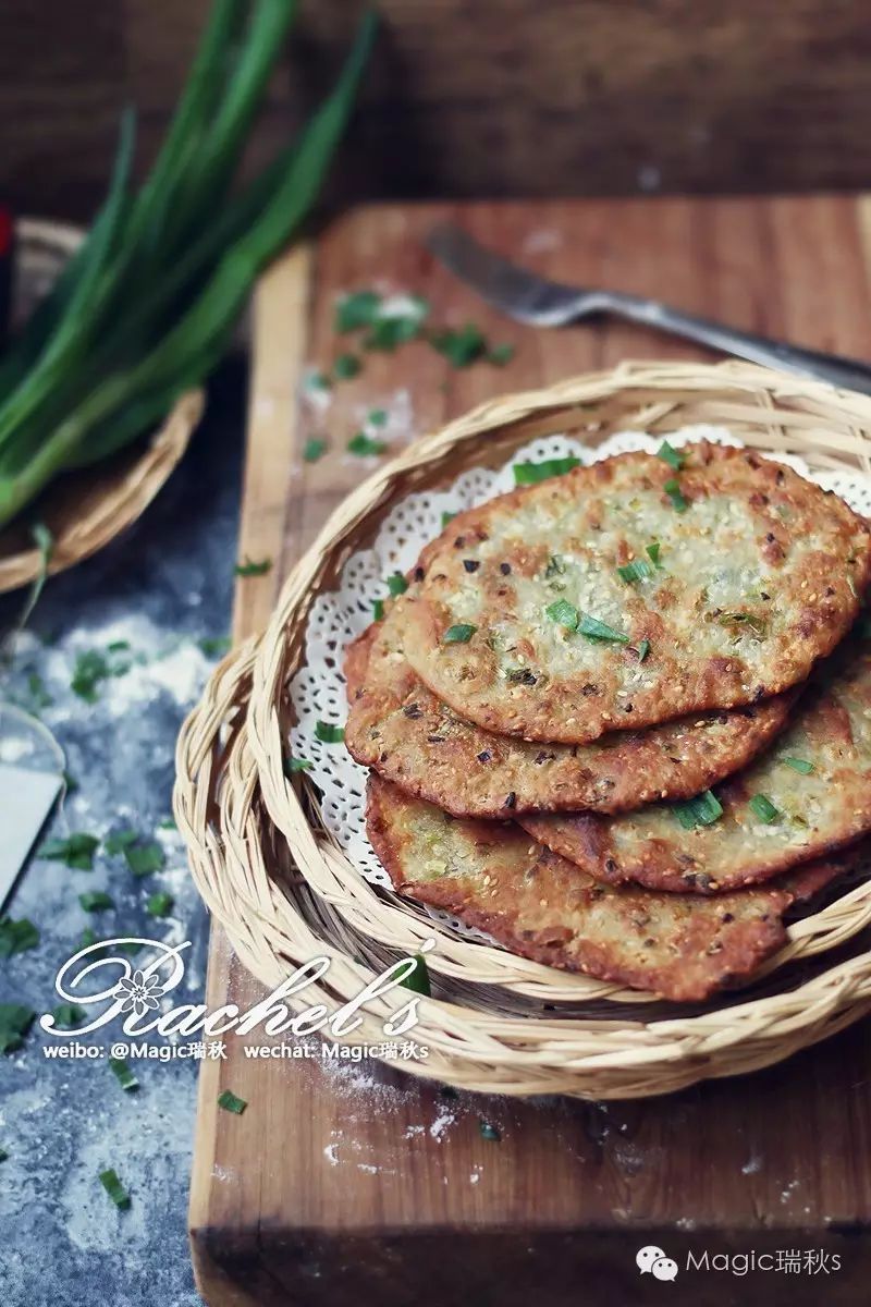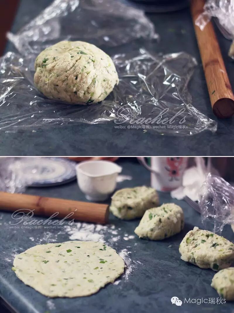 具体食谱:瑞秋美食【免和面的快手韭菜盒子、葱油饼】(4种折法)
