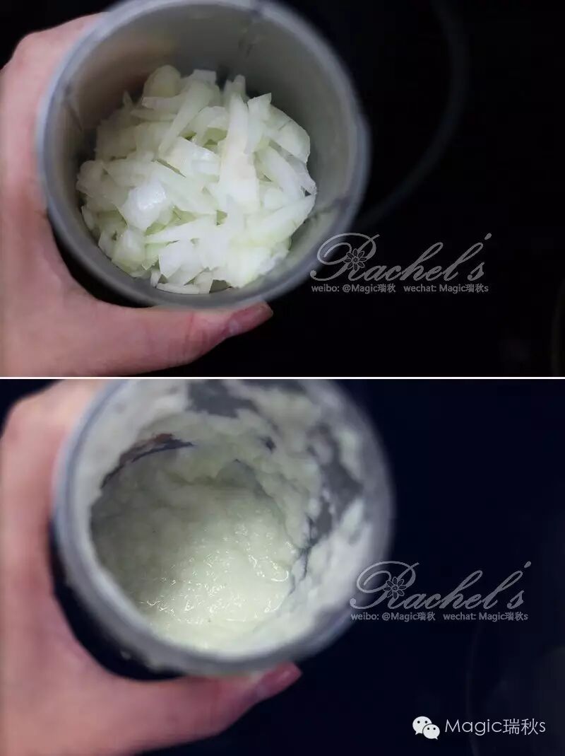 2、用洋葱泥和面可以保持面团是白色的,你也可以用青葱泥、红葱头泥等;