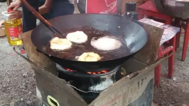 这天江东集市赶集的一些在下村长大的小伙伴们一定会买油饼给带回去,越多越好,我之前是表示不解和纳闷,油饼哪里没有啊,干嘛还非要在这买还要带回去。吃完我是明白为什么啦,不是排队早或在摊主那开点后门还真没有货卖给你。
