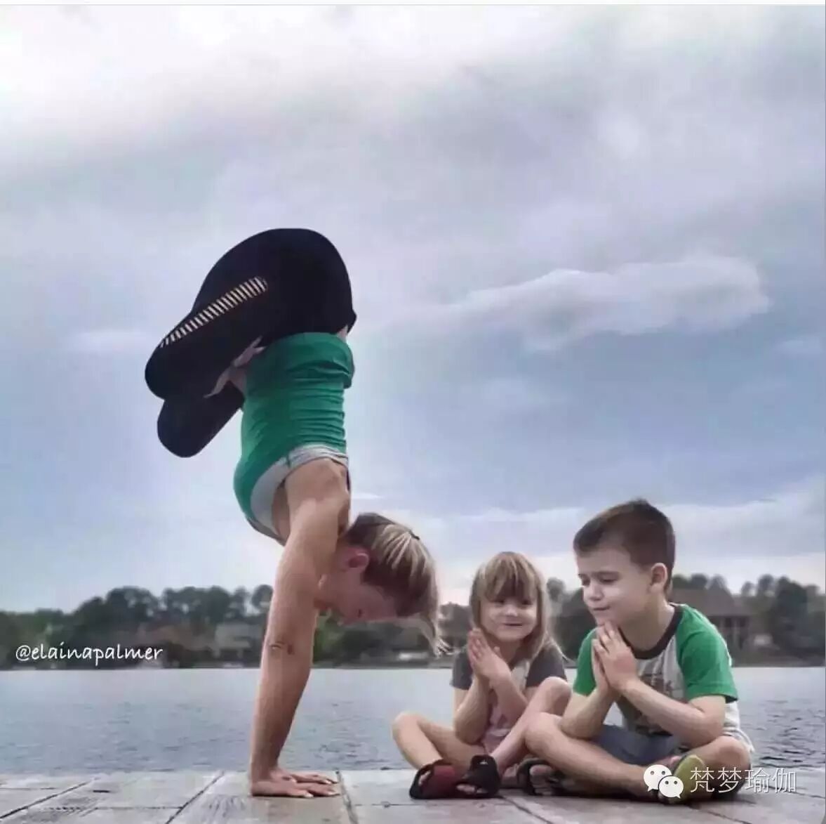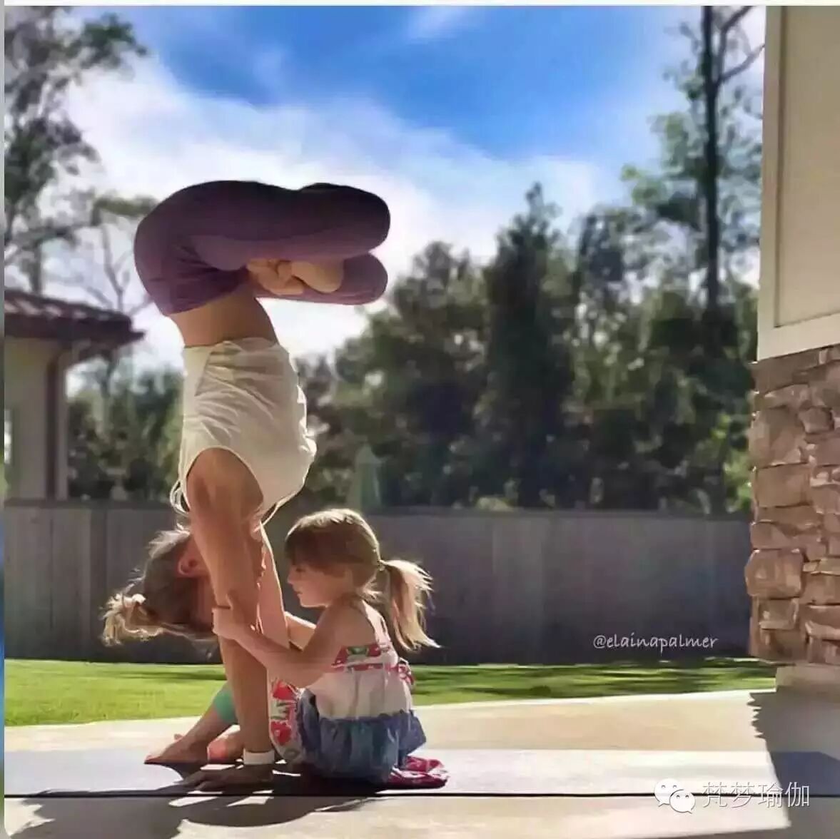 亲子瑜伽在欧美流行多年,很多外国宝宝不到一岁就开始学习倒立,孩子们专业的瑜伽姿态不输瑜伽天后麦当娜。