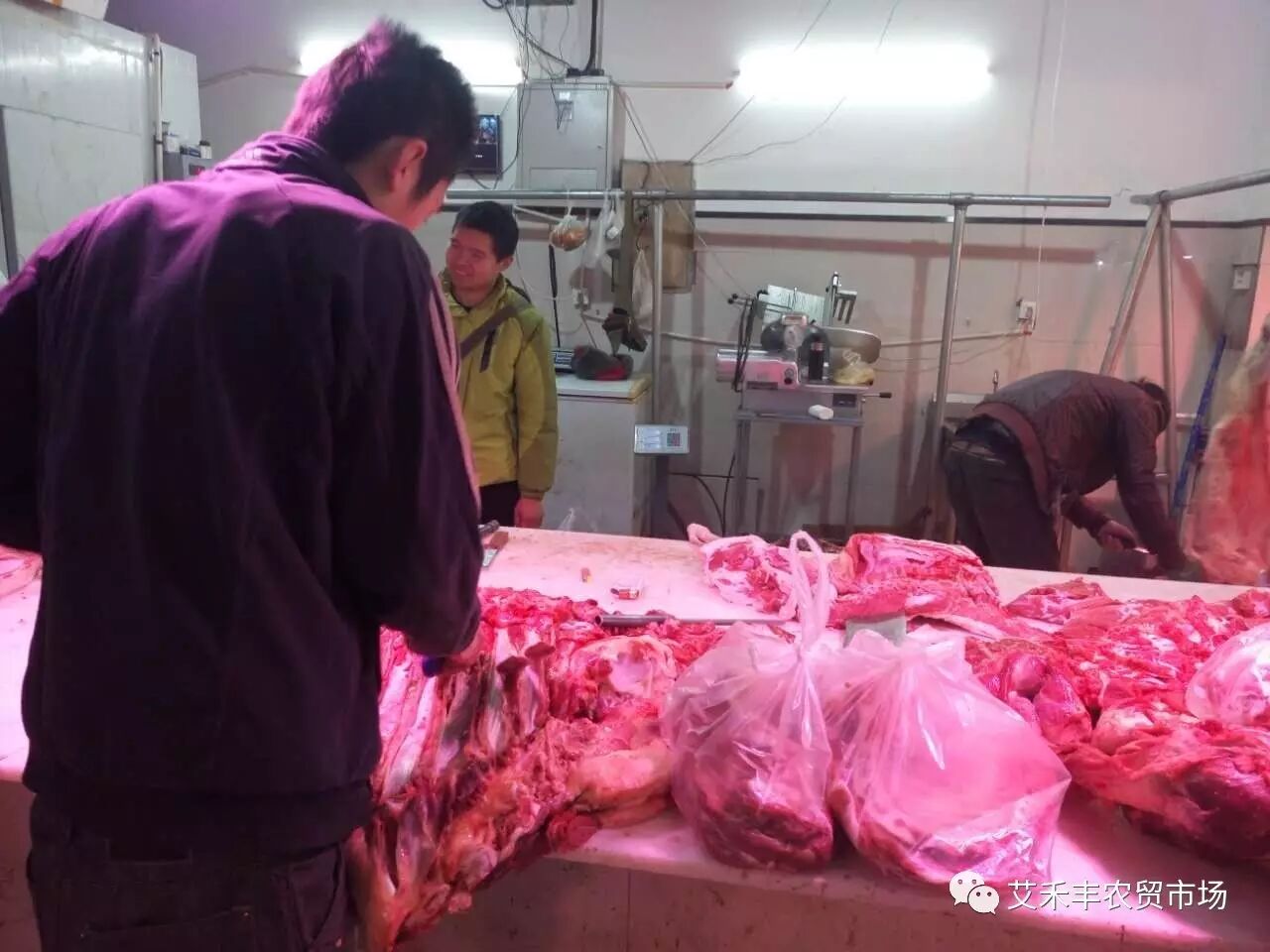 邻近年关,他家生意正是火爆的时候,大早上的店里每个人都在忙碌着,顾客都排着队买羊肉