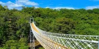 “云中漫步空中吊桥”全长170多米,离地高度68米;“高山栈道”,全长1470米,直通青云小镇,这里拥有四季分明的自然景色和罕见的生态环境,区域负氧离子含量比城市高出1000倍。溜索全长200米,离地高度75米,是利用高差,以滑轮和钢索为工具,将人悬于钢索下由高向低作长距离滑行,让您享受有惊无险的轻松乐趣。