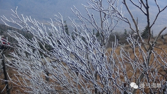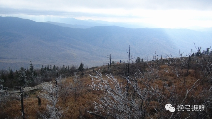 二锅盔山顶,后面是大锅盔山,山顶被云雾笼罩着