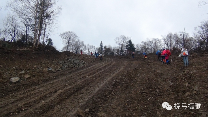 坡度大约45°——60°,坡陡路滑,加之粘土粘在鞋上,极是费力