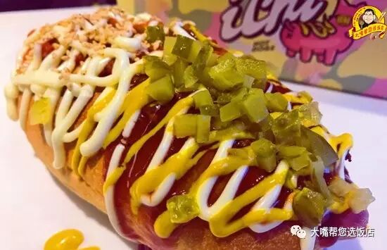 美式热狗小店,店里有泡菜、肉酱、辣肉酱、煎蛋热狗,鳗鱼的,怕胖的小伙伴还可以吃到素热狗。面包香香的,肉酱是自制的,各种酱和黄瓜菜也都非常好吃,推荐王者荣耀,一个热狗两种口味,肉酱和泡菜,加上秘制酱汁,有空一起吃啊。