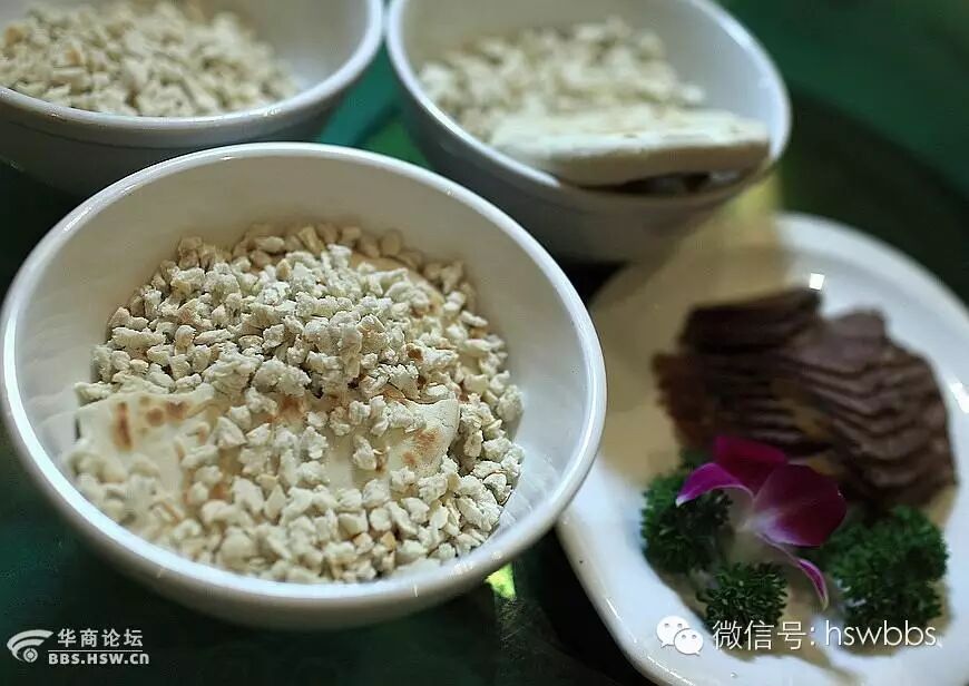 干泡:要一碗羊肉汤,不煮馍,把馍掰碎泡着吃,这叫干泡。 水围城:汤宽的吃法,碗里都是汤,馍在汤中间冒一个尖尖,就象水围着城一样。