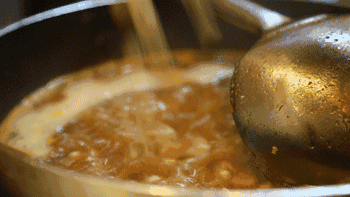 牛羊肉泡馍不仅讲究烹调,更讲究"会吃"。没有经验的人,吃前总习惯刁:用筷子来回搅动,这是一忌。"老陕"的吃法是,从一边一点一点"蚕食",这样能始终吃出鲜味。吃时,还可根据自己的口味嗜好,调入糖蒜,或香菜、辣子酱、之类佐料。吃后饮"高汤"(即原汁汤加粉丝烩制而成)一碗,异香满口,顿觉神清气爽,精神倍增。