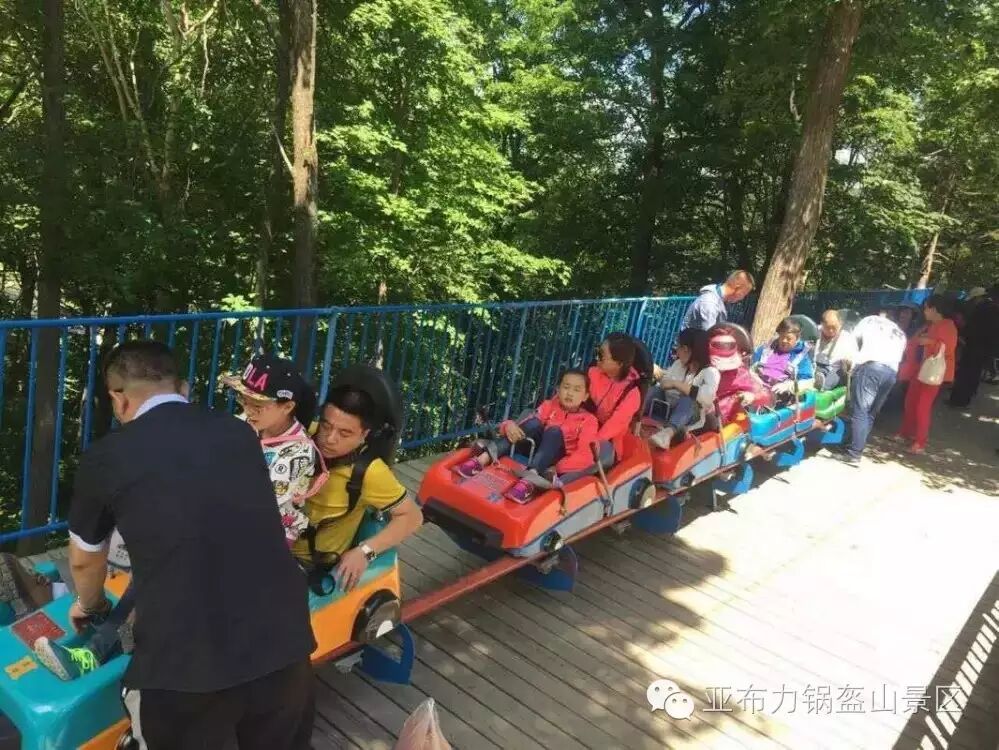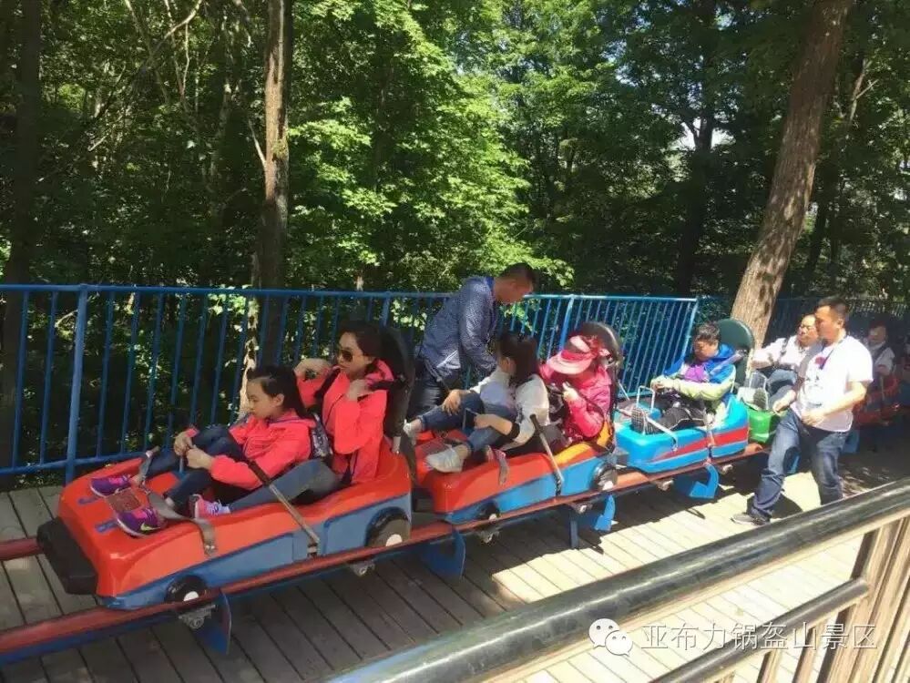 我们的工作人员正在认真的帮每位游客系好安全带和讲解滑车的乘坐须知。