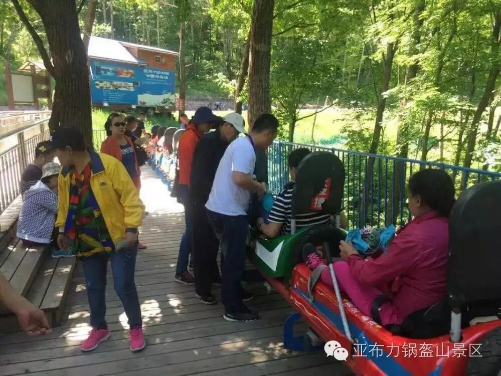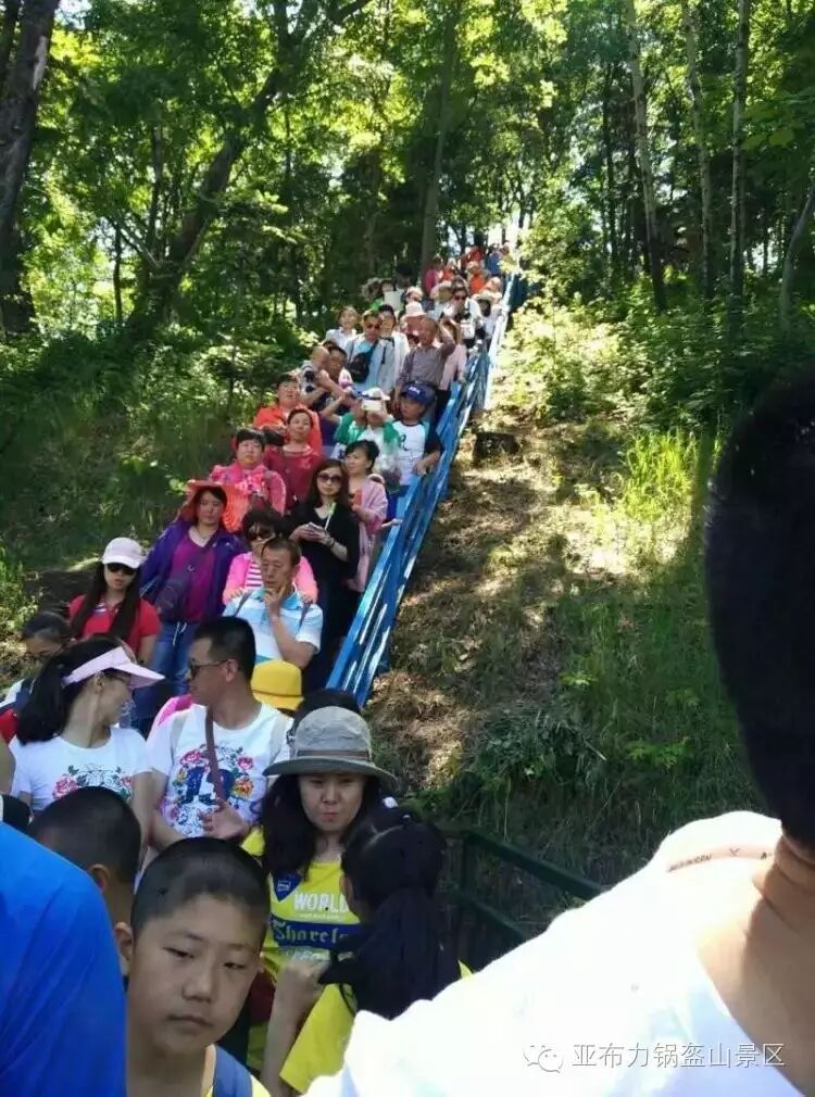 大家非常有只秩序的排着长队,等着体验云中漫步空中吊桥和高空溜索。