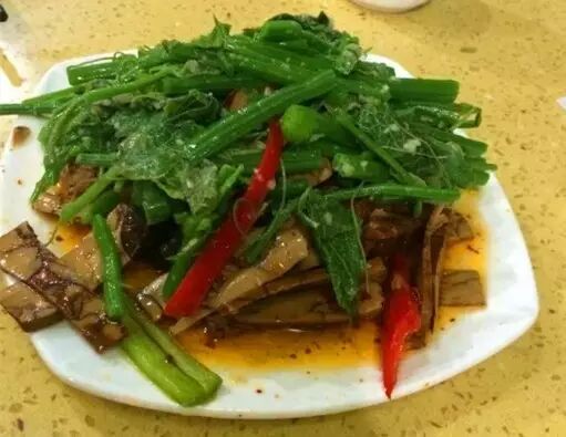 小芹菜和豆腐干以蒜汁调拌,再加上简单的盐味精调味,清爽可口。