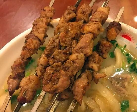 烤羊肉串焦黄香嫩,吃着羊肉串再来个烧饼,保你心满意足。