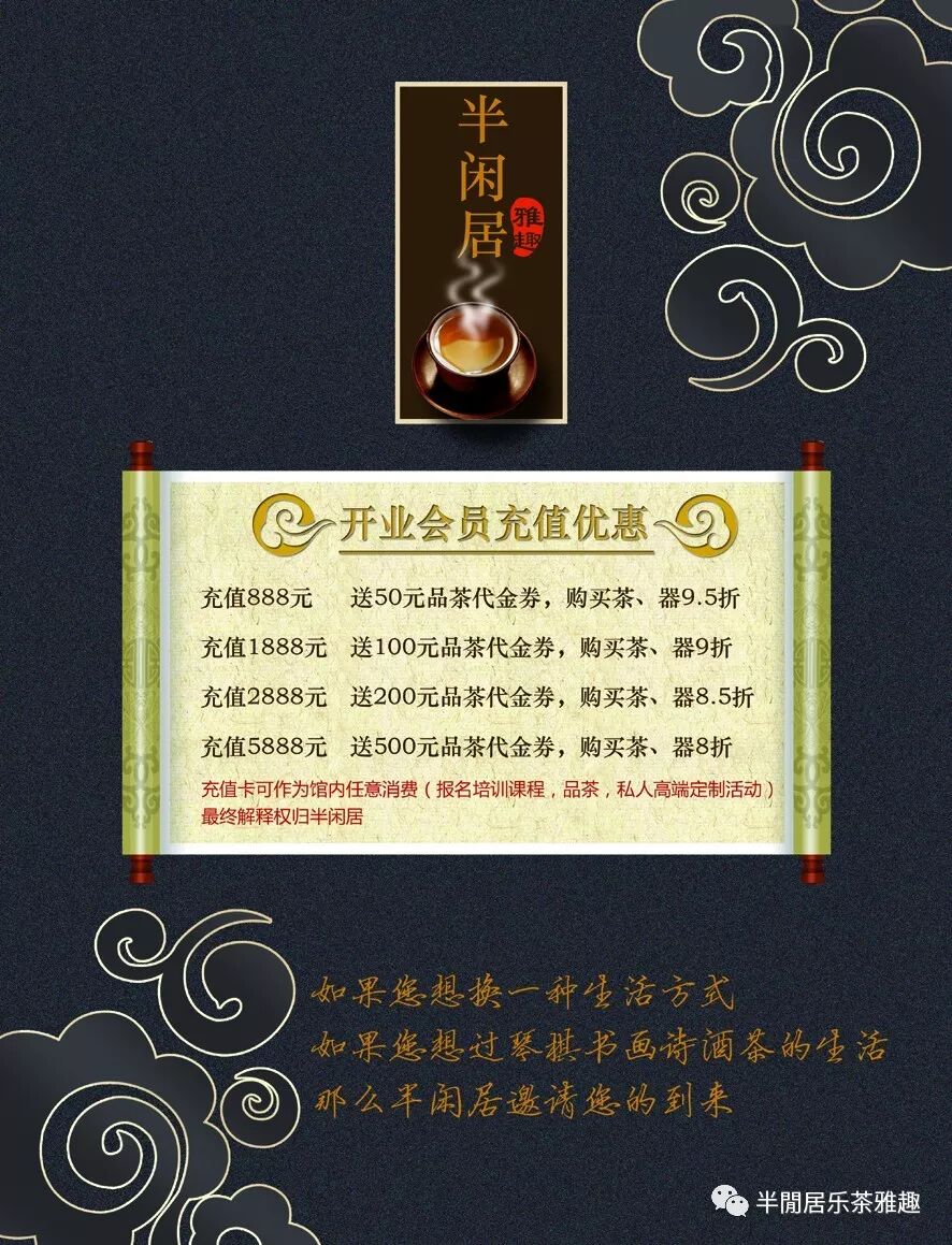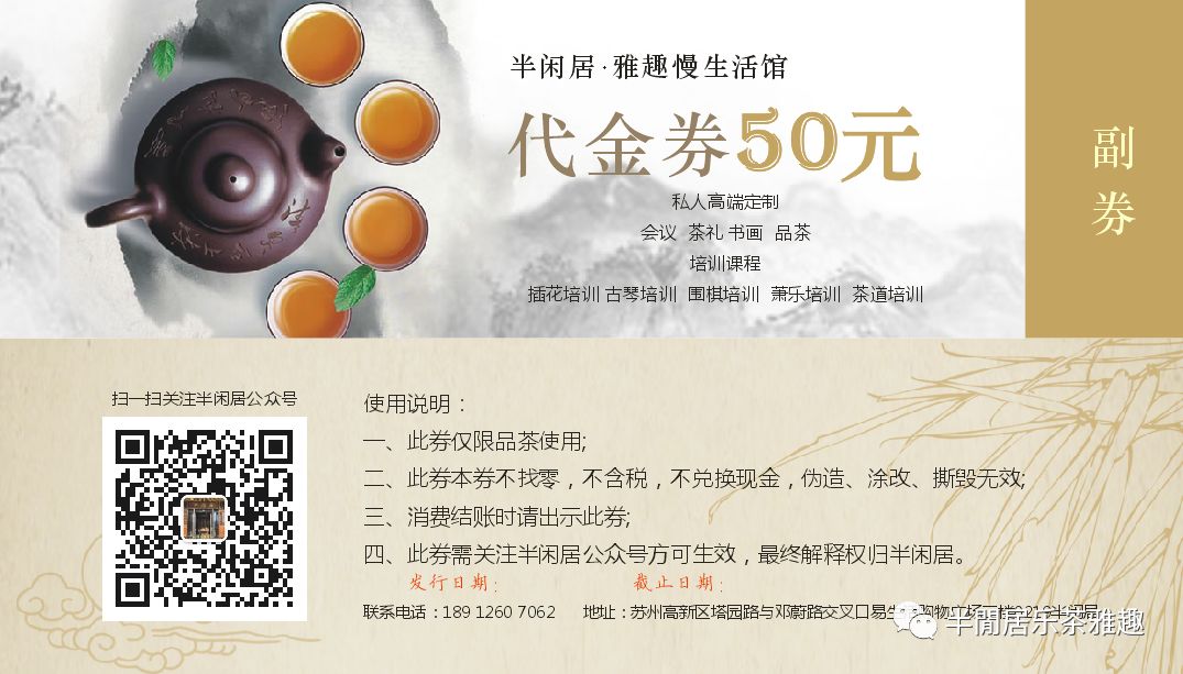惊喜四 半闲居开业当天品茗代金券进店就送