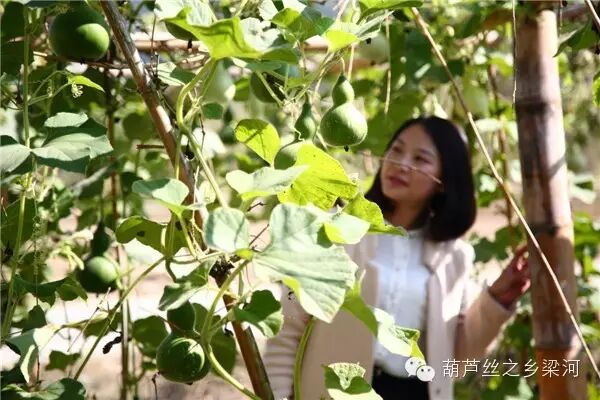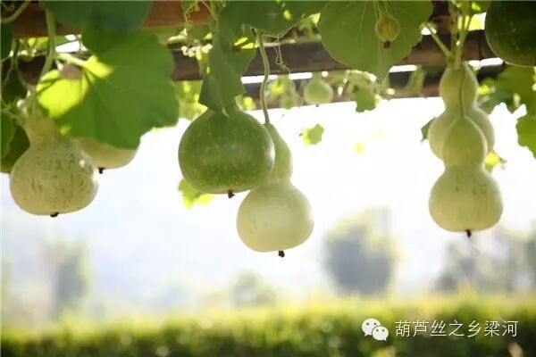 梁河县勐养镇帮盖村是葫芦丝音乐的发祥地,是葫芦丝演奏大师哏德全的家乡。隆冬,碧绿的勐养江缓缓流过村庄,带给美丽的帮盖村盎然的生机。竹架上,大棚里,可爱的葫芦娃你挨着我、我挤着你,赶集似的赴一场冬天的约会。阳光下,金色的藤蔓伸出卷须触摸蓝天,大小不一、形状各异的青葫芦在墙角随风摇曳成一片幻影,轻盈、柔美,如五线谱上跳动的音符,隽永而美好!