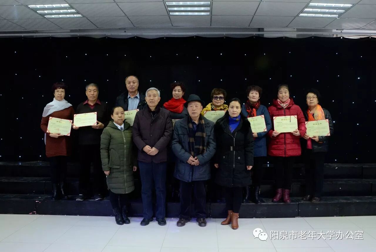 表演的间隙,学校领导为市老年大学参加第二届全国葫芦丝大奖赛山西赛区的获奖学员颁发了获奖证书。获得全国第二届器乐大赛山西赛区葫芦丝专业老年组一等奖的刘喜云、高玉珍,二等奖的王鸿上台领奖并合影留念。