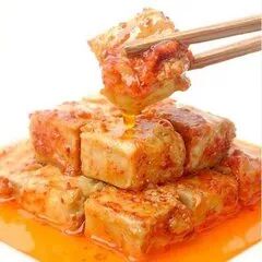 其实,即使开工了,我们也不能马上吃到梦寐以求的臭豆腐乳。从晾晒到长菌,再从长菌到里里外外的发酵,最后成品端上餐桌,大约还需要大半个月,这段时间才是最难熬的。外婆在菜市场选好质量上乘的老锅豆腐,用晒干的稻草铺做底,晾至半干的豆腐一块块码得整整齐齐,等待上霉发酵。这种豆腐乳对制作季节、天气要求极高,制作时间长,保质期又短,真是得之不易啊!而做好的豆腐乳妙在入口即化,就像夏日里的雪糕一样,还未等你细细品味,就早已融化在舌尖,每一个味蕾都开始欢快地跳起舞来。外婆做的臭豆腐乳表层散发出淡淡的腐味,入口即转为香甜,臭得舒爽,臭得惬意,臭得沁人心脾,毫不夸张,只要吃过外婆做的臭豆腐乳,就没有一个不给好评的。爸爸妈妈常拿外婆做的臭豆腐去送朋友,总是供不应求。可怜我家因痛风不能吃豆制品的外公,有时也会冒着脚痛的风险,偷偷吃上一两块。