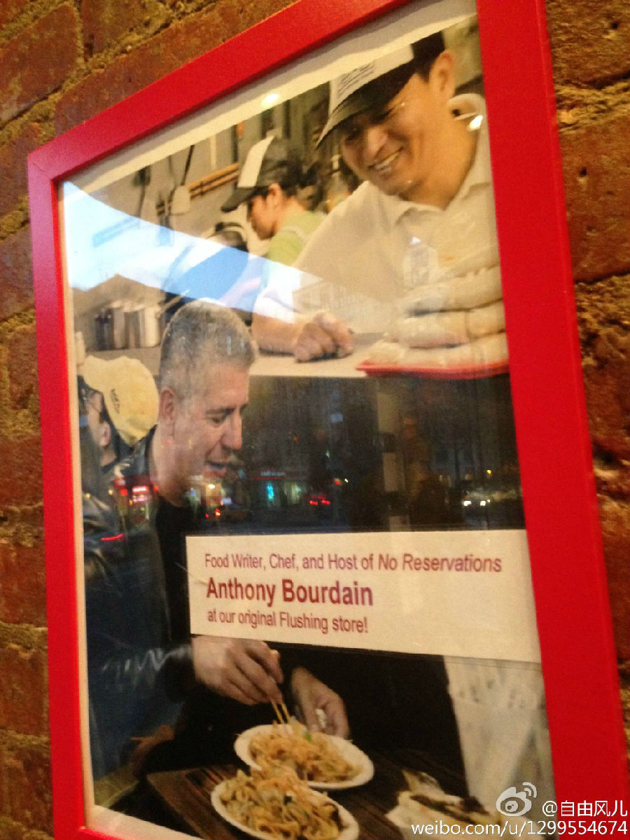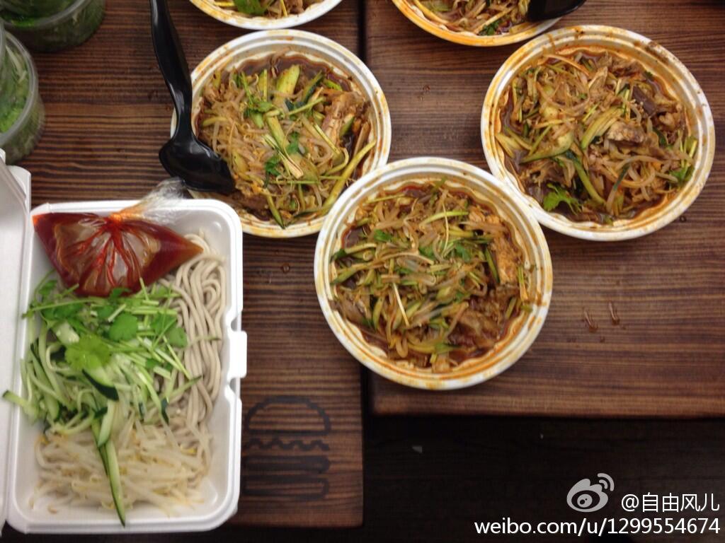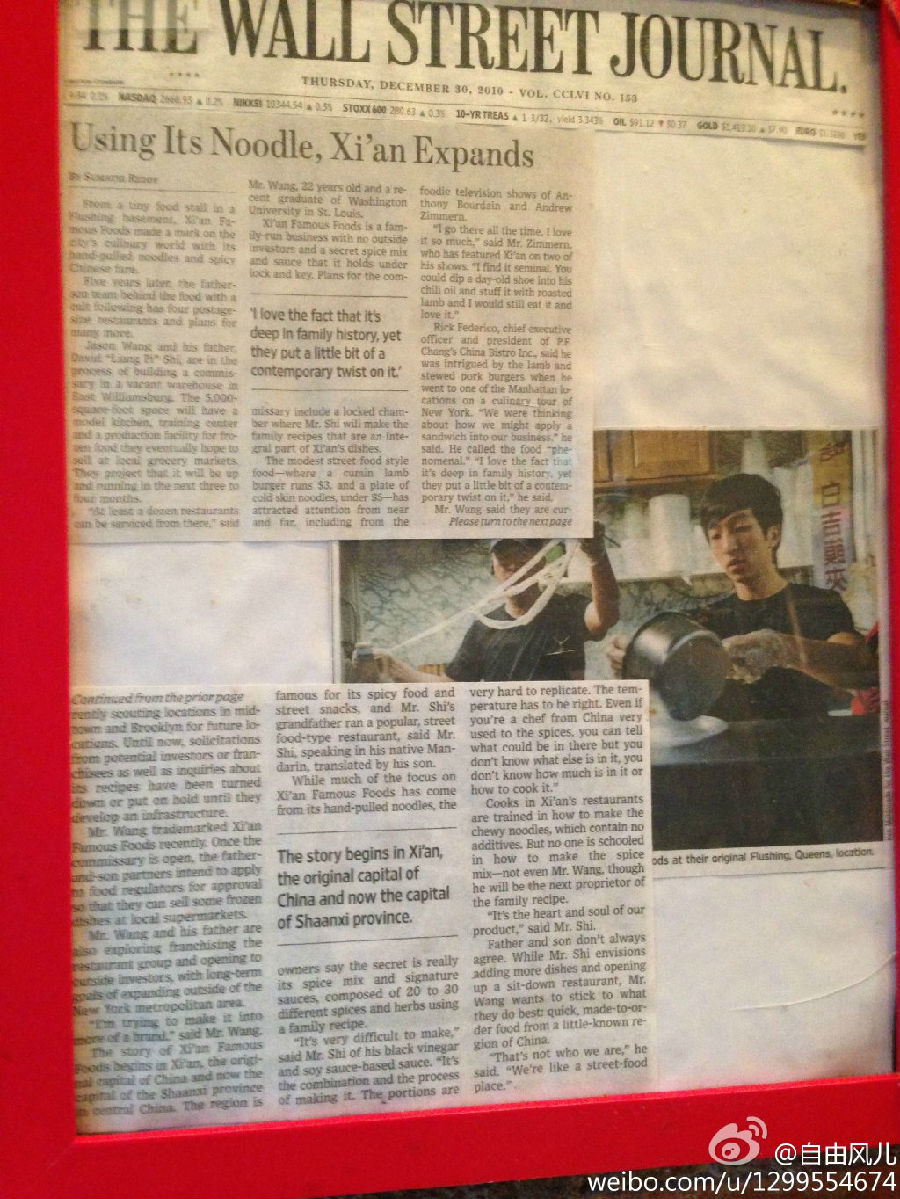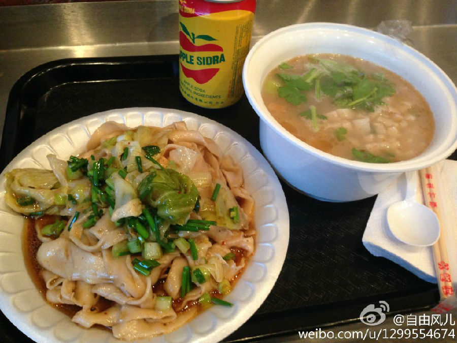 ,摊主是来自西安的“石凉皮”,陕西师范大学校友,雇了一位西裔员工。后来其儿子大学学了现代商业管理经营,父子在纽约开了7家西安小吃连锁快餐店,生意挺火。目前,在曼哈顿也开了分店。