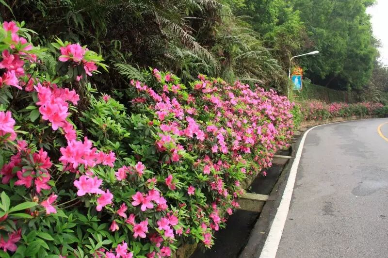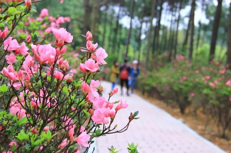 沿着西樵山山北登路慢慢往上走,路两边竞放着一簇簇、一丛丛艳丽夺目的杜鹃花。西樵山杜鹃园位于桃花园景区和观音景区之间红花杜鹃、白花杜鹃、粉红杜鹃等100个品种。