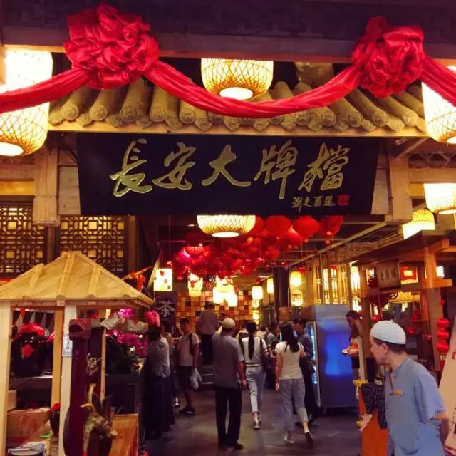 去长安大排档吃的是情调,看的是陕西特色,摇曳的灯笼,有秦腔佐酒,皮影戏开场,周边还有特色的集市,消费便可换取银票购买集市的手工艺品。