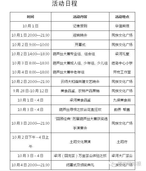 10月1日至4日,第三届中国·德宏(梁河)葫芦丝文化旅游节将在梁河举办。届时,来自全国各地的葫芦丝演奏大师、高手、名家将云集“葫芦丝之乡”,比赛总奖金高达30.5万元,共有96个奖项等高手过招!