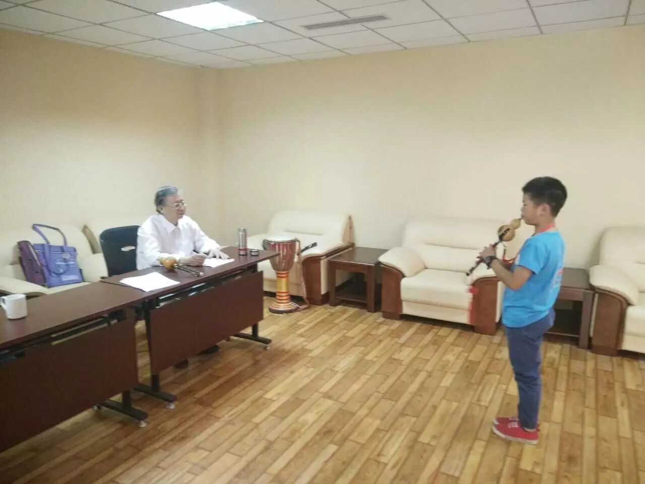 来自全国各地的数十位葫芦丝爱好者汇聚在崔各庄地区文化服务中心。其中有不远千里专程从黑龙江赶来的老年葫芦丝爱好者,也有热爱葫芦丝演奏不到十岁的小同学。在考级现场,