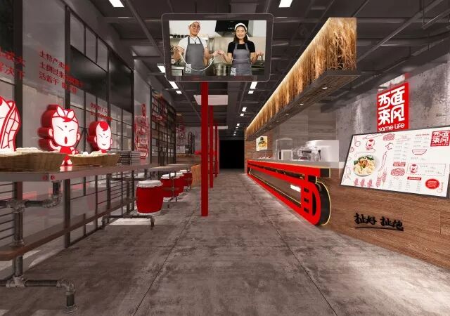 3.0店面整体色系采用了灰与红的绝妙搭配,灰--是城墙的颜色,代表淳朴,红--是陕西火辣辣的秦椒红,代表奔放,简约的门头形象,不做任何花哨的处理,清晰,直观的表达,更符合90后,00后这新一代消费群体的审美标准。