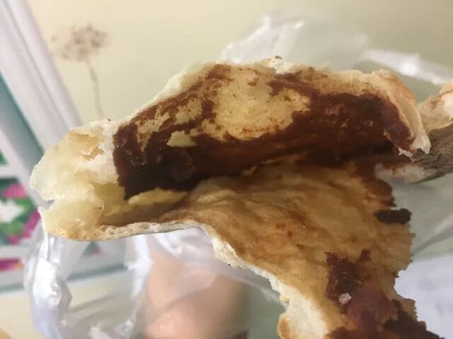豆沙烧饼,其实和锅盔的外在是一样的,不过甜口的烧饼真是很好吃。豆沙很是细腻,最好趁着刚出炉来的那一份热度,撕下一块,豆沙似化非化,配着超韧的面皮,口感很棒。