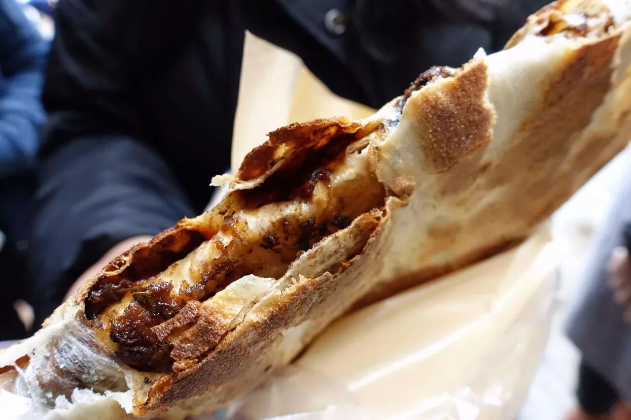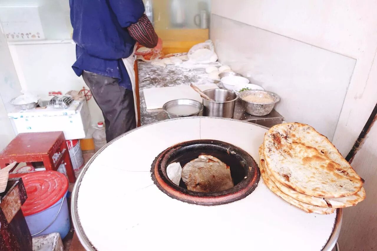 光是瞧着锅盔从炉子里拿出来的那一瞬间就馋得不得了。尝了梅干菜、牛肉两种口味的锅盔,还有豆沙烧饼和葱油烧饼。面皮总体都是偏硬,不过韧度很好,需要咀嚼,咀嚼,很多次咀嚼。