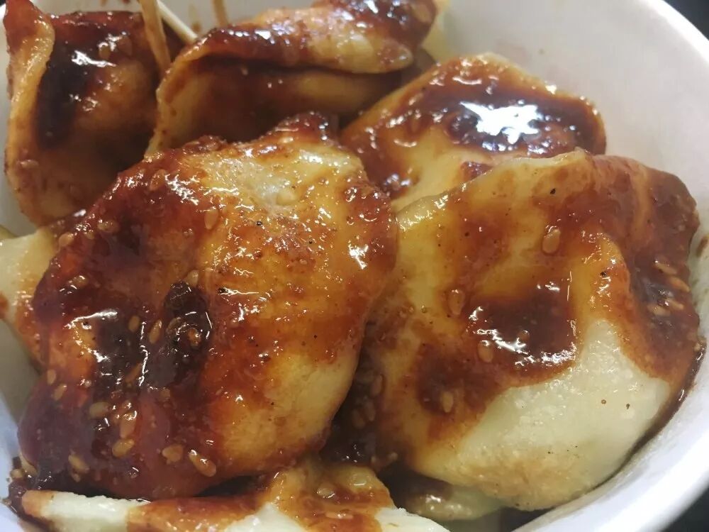 名为樱顶煎饺,实际在湖滨。饺子煎得很好,下层酥脆,上层软而筋道,馅料层次感不大分明,但淋上辣酱,吃起来,嗯,有浓浓的辣条味儿。反正深得小编心意。