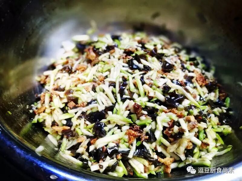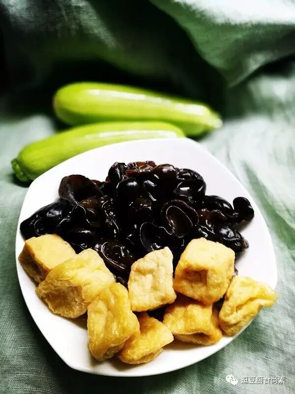 主材:西葫芦1/2、油豆泡1/4、木耳1/4